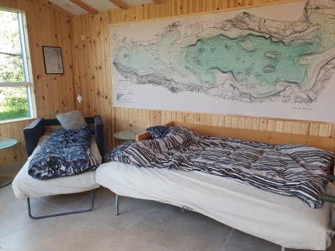 Sovevørelset mod søen er stor set en spejlvending af Fiskehejren, også med to madrasser for samlet eller separat placering (Svanen):